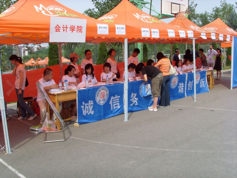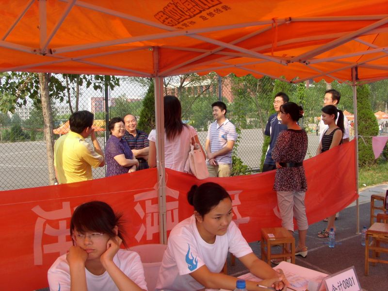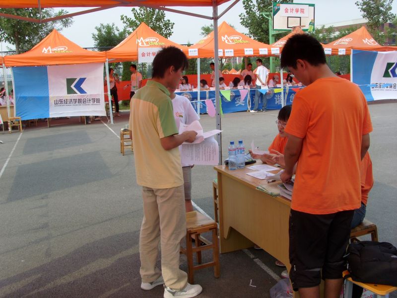 报名工作于中午十二点正式开始,为上好大学第一课,整个报名工作由新生独立完成。报名入口处设有党员服务站,为新生解答档案转移、预备党员转正工作中存在的各种问题。同时,质点通讯社的工作人员在出口处向新生发放宣传材料及入学指南,热情的帮助新生尽快了解山经。另外,引导员、解说员在场地入口周围及宣传板处耐心引导同学报名,详细介绍我院情况,为新生解答有关入住宿舍,以及日常生活等方面的疑惑,帮助新生更快更好地适应大学生活。一位迎新工作人员告诉我们:能够为学弟学妹们服务,即使再热再累也很值得。