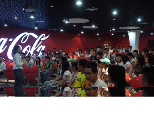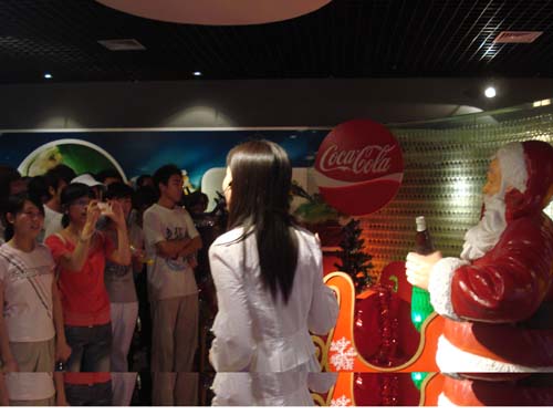 参观团由明水校区各院系的60名同学组成。带着喜悦与好奇的心情,同学们在工作人员的带领下进入了公司的放映厅,在此,同学们受到了热情的款待,并观看了可口可乐放映的宣传片。随后,参观团走进了公司的“时光隧道”,观看了了可口可乐各个时期的发展过程。穿过“时光隧道”,展现在同学们面前的是可口可乐高自动化的生产流水线,那里的工作人员详细地向同学们介绍了制造可乐的整个过程:水净化系统,糖浆制造系统,吹瓶系统以及玻璃瓶生产线。当听说每个庞大的系统只需4个人时,大家都惊叹不已!但最让大家心旷神怡的是公司的博物馆展厅,在此,同学们参观了圣诞老人模型,第一杯可乐卖出时的小屋模型——可乐木桶,以及与可口可乐合作的“魔兽世界”。与此同时,工作人员还向大家接受了公司的历史与企业文化。同学们在展厅纷纷合影留念。