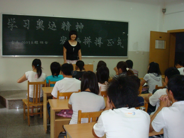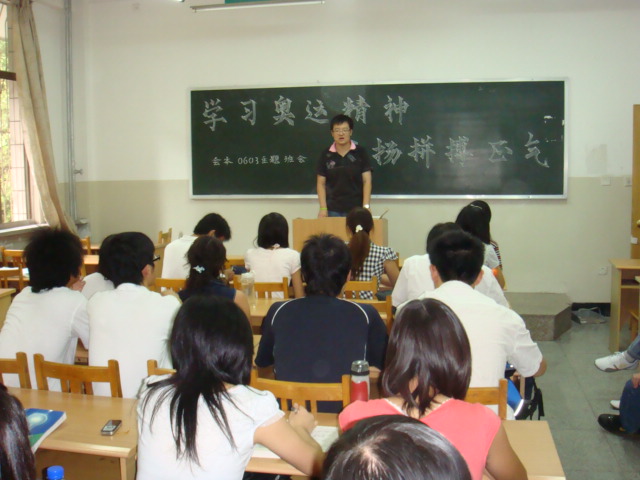 9月3日,会计0603全体同学率先召开了以“学习奥运精神 发扬拼搏正气”为主题的班会,拉开了此次扬奥运精神活动的序幕。在班长于迪的带动下,同学们积极踊跃发言,与大家分享奥运心得。刘晓桢同学为大家讲述的冼东妹、丘索维金娜等奥运冠军背后的辛酸故事将班会推向高潮,全班同学围绕“奥运冠军是怎样炼成的”以及“怎样学习奥运精神”展开了热烈讨论,同学们联系日常生活,结合实例,谈了自己的理解。团支书卢玥总结道,“大学生活就如同运动健儿们平时的训练,辉煌的成绩来源于勤奋坚持和自信,唯有拼搏,点滴积累才能向奥运冠军一样站在人生的领奖台上”。 作为华夏儿女,同学们为北京奥运会的成功举办以及我国所取得的辉煌成绩感到由衷的自豪,也为健儿们自强拼搏,无私奉献的精神而感动。