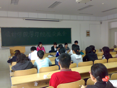06级学生迁入校本部已有一个月,站在大三的路口上,很多同学对于以后的发展情况不是很清晰。为了使大三学生们更快找到自己的发展方向和目标,bat365官方官网学习部于10月9日下午在逸夫楼举办了学习经验交流会,我院学生会主席胡啸、副主席贾琳琳、质点通讯社社长李艳华及会本0505班团支书王思光担任了此次交流会的嘉宾。