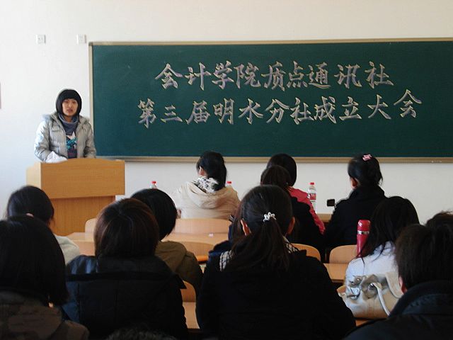 4月1日下午,bat365官方官网质点通讯社第三届明水分社成立大会在明水校区1113教室召开。质点通讯社明水校区负责老师王佃冰、质点通讯社社长卢玥、秘书长李佳、副社长董璐璐、副社长史慧和副社长孔毅华应邀出席。质点通讯社明水分社全体成员参加了此次大会。