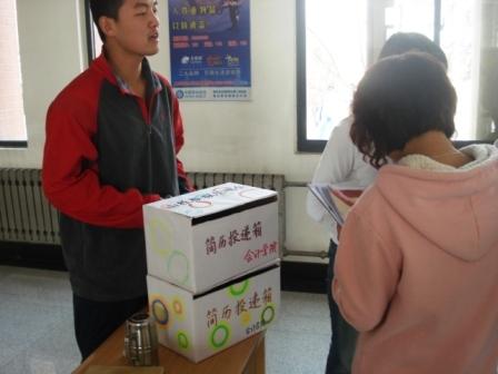 首先,主持人介绍了本次模拟招聘会的流程,然后开始了个人简历的讲解,由同学绘声绘色地介绍了简历的四步制作流程,并穿插实例,使抽象的过程更加具体化。同学们一边认真听,一边记笔记。随后,主持人还播放了联想公司的招聘视频,让同学们感受以下真实招聘会的气氛。