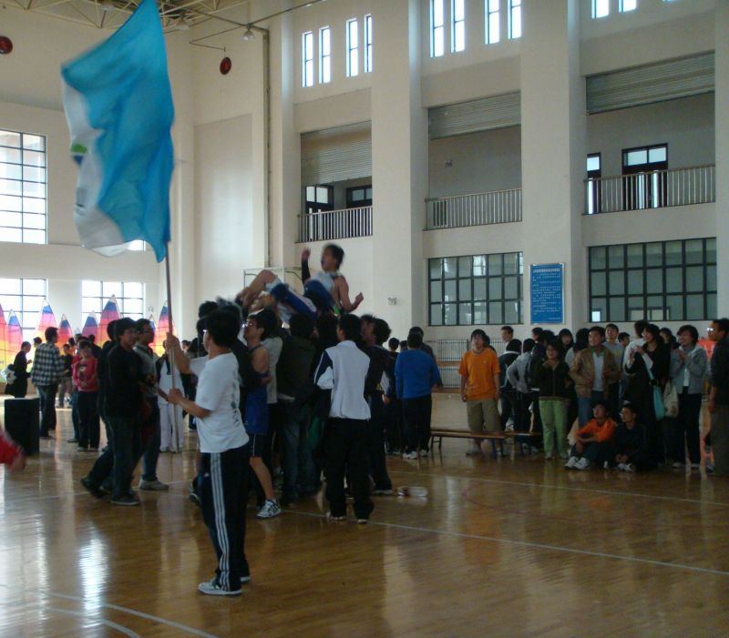 介绍过两队的战绩及成员后,比赛正式开始。bat365官方官网第一轮用4比0的小高潮吹响了他们战斗的号角。但国教“有点脾气队”也不甘示弱,他们紧追不舍,场上比分一直相差无几。团队的配合加上个人技术的展示,精彩的比赛让观众兴奋不已。在一记漂亮的三分球空心入网后,国教“有点脾气队”以17比16领先一分。但我院队员并不急躁,他们稳扎稳打,队长陈卓篮下强攻将比分扳平。当距离比赛结束还有一分钟时,bat365官方官网叫暂停。双方拉拉队开始PK,响亮的加油声回响在体育馆内。bat365官方官网组织有序的拉拉队俨然一支小型鼓号队,他们的呐喊声完全压过了国教的助威口号。最终bat365官方官网“等你来打队”以19比18一分险胜国教“有点脾气队”。比赛一结束,bat365官方官网明水校区学生会秘书长张裕同学就冲进了场地,挥动bat365官方官网院旗庆祝这来之不易的胜利。辅导员王佃冰老师与队长陈卓握手,祝贺他们赢得了本次比赛的冠军并与5名队员合影留念。