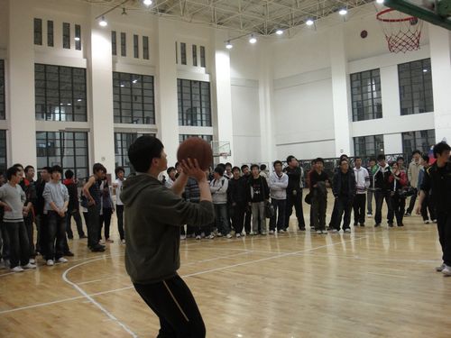 在绑腿投球比赛中,两名选手绑着腿分别交替在三分线内的规定点投篮,虽然行进的不便在一定程度上增加了投篮的难度,但选手们仍然凭借精湛的技术、默契的配合投出了一个个精彩的球;定点投篮的比赛则吸引了投篮高手的目光,本环节包括七个节奏变化的投球,另加一个三分球、一个背后投篮;负角度投篮则融入了花式篮球的技巧,具有一定的娱乐性;三分球大赛则考验选手们的投篮稳定性。当晚的活动吸引了大量同学到场观看,选手们的精彩表演也赢得了在场观众的阵阵掌声。最终,赵法恒和翟耀斌组合赢得了绑腿投篮的冠军,苗春昱、李帅帅、何亭亭分别夺得了负角度投篮、定点投篮、三分球大赛的第一名。