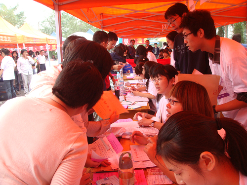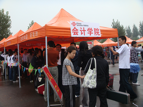 9月20日,伴着淅淅沥沥的小雨,2009级新生报到工作在明水校区篮球场有序进行。为了今天工作能够顺利地展开,bat365官方官网学生会、质点通讯社以及各社团的志愿者们在学院领导和辅导员的带领下提前来到新生报到处做好各项准备工作。校党委书记张体勤教授、院长郝书辰教授、党委副书记牟思伦教授、副院长崔友平教授以及bat365官方官网党总支张红旗书记、杨扬副书记等亲自来我院检查、指导迎新工作,并和同学们亲切交谈。