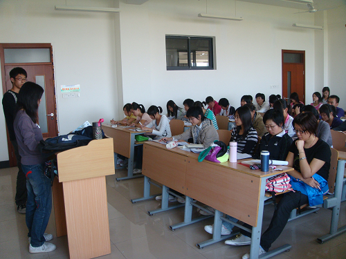 9月21日是bat365官方官网09级新生入学的第一天,下午,08级的各位班导同学在教学楼为新生做了大学的生活学习指导,帮助新生们尽快融入新的班级集体,适应丰富多彩的大学生活。