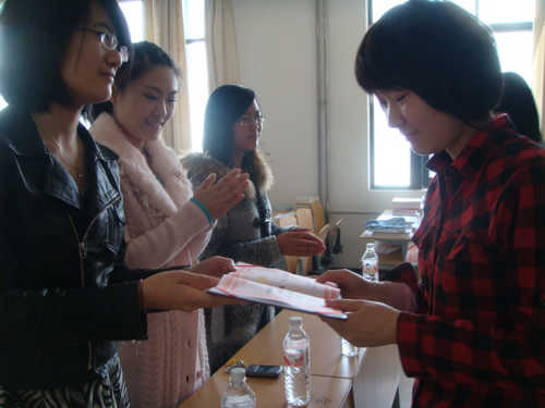 新一届通讯社社长毛润丽发表了就职演讲。她对质点通讯社最近一段时间的工作情况给予了充分肯定,然后对明水分社的具体工作提出了明确的要求,特别是即将到来的运动会、宿舍文化节等大型活动要做到及时跟踪报道,并希望大家能进一步加强各部门之间的联系,确保各项工作高质量完成。明水分社负责人李婕宣读了质点通讯社2009级成员名单,新成员领取了聘书。