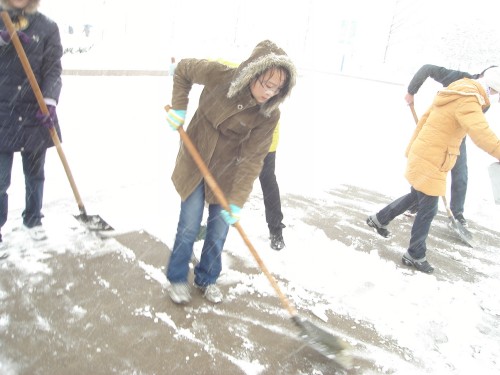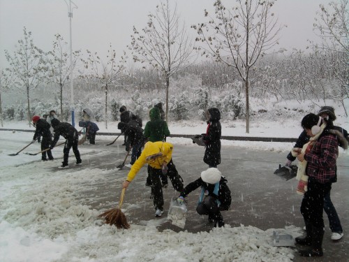 bat365官方官网学生积极清扫积雪