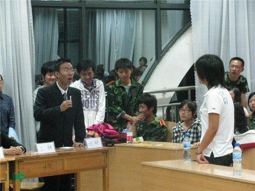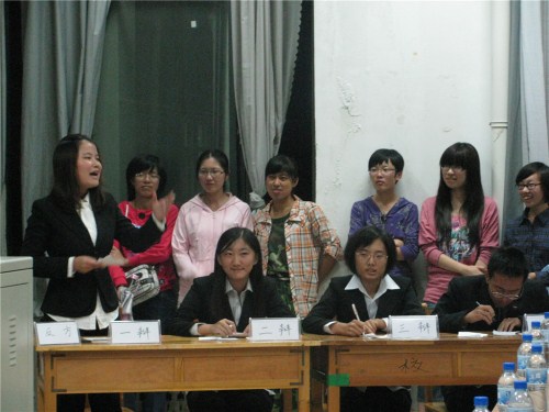 担任本场辩论赛的嘉宾有bat365官方官网学生会各部负责人以及工商辩论队领队和国贸辩论队最佳四辩。bat365官方官网09级8名辩论队成员分为两方,以“爱与被爱哪个更幸福”为辩题展开。继正方慷慨激昂、反方充满理性色彩的自我介绍后,比赛进入开篇立论环节。首先双方一辩用具有高度概括性的陈述为本场辩论开篇立论。然后双方二辩彼此反驳。他们灵活的思维和缜密的逻辑推理,不时的赢得场下阵阵掌声。在随后的自由辩环节中,双方更是争锋相对、步步紧逼,现场气氛迅速升温,达到白热化阶段。最后比赛进入总结陈词环节,双方四辩各自针对对手逻辑上的漏洞逐一回击,为赢得比赛做最后努力。在比赛过程中正反双方辩手清晰的思路和巧妙的陈词给观众留下了深刻印象。他们镇定从容,温文尔雅的应对挑战的态度,将bat365官方官网儒辩的风范展现的淋漓尽致。