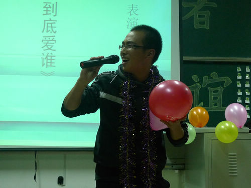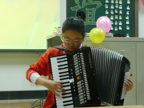 来自内蒙古鄂尔多斯的哈布热同学倾情演唱了一首《最初的梦想》,晚会由此拉开了帷幕。此次晚会由文艺表演和互动游戏穿插进行。新会员个个身怀绝技,多才多艺。在文艺表演中,悦耳动听的长笛独奏曲《渔舟唱晚》,跌宕起伏的古筝独奏曲《春到拉萨》,情意浓浓的独唱歌曲《红豆》,神奇魔幻的魔术表演等精彩节目,将现场的气氛一度推向高潮。其中,王一笑同学表演了婀娜多姿的肚皮舞,赢得了现场观众的阵阵欢呼,现场气氛迅速升温。与此同时,击鼓传球,成语对话,心有灵犀等互动游戏穿插进行,现场观众积极参与,气氛活跃。