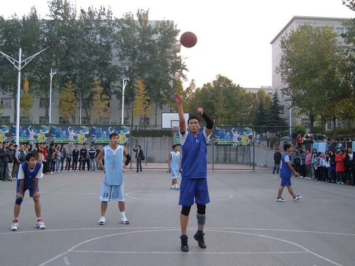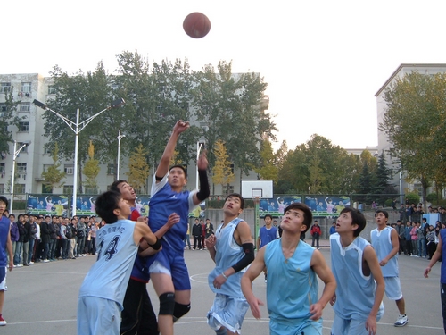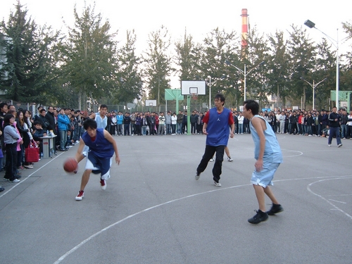 被观众围的水泄不通的场地上,决斗一触即发。bat365官方官网篮球队队长陈卓开场就上演了“打三分”,场上场下气氛同时升温。双方比分交替上升,半决赛的激烈在第一节就开始显现,分差始终在四分左右徘徊。至第一节结束,bat365官方官网虽以15比11领先,但丝毫不敢大意。第二节工商管理学院一度打出小高潮,bat365官方官网队员在暂停调整后,重新回到战场上,比赛焦灼化。半场比分定格于25比21,会计领先。