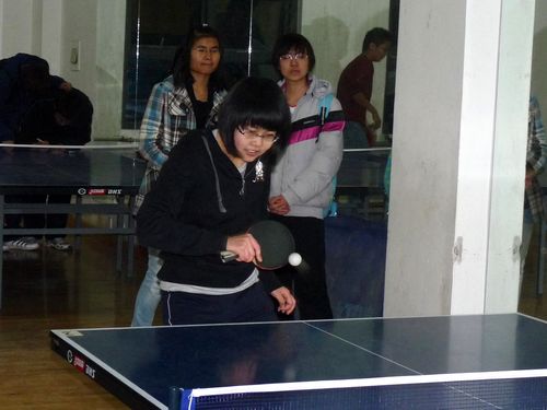 本次比赛分为小组赛和友谊赛两个环节。小组赛包括男子单打和女子单打两个项目,实行单场淘汰赛制。小组赛预赛阶段中,参赛选手两人一组进行对决,采取三局两胜制,胜者进入决赛,决赛阶段则采取五局三胜制。比赛中,旋转球、弧线球等技巧无一不展示了选手们高超的球技,而远台相持、近台快攻、对削等精彩对垒更是赢得了观众们的阵阵喝彩。经过激烈的角逐,来自外国语学院的赵越同学和我院白杨同学分别赢得男子单打和女子单打冠军。