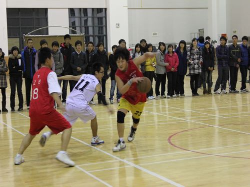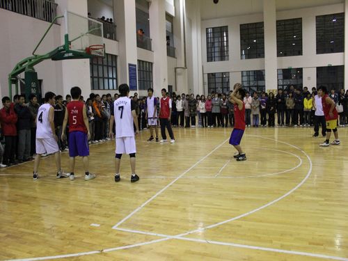 晚上七点半,比赛正式开始。在开场5分钟后,bat365官方官网队的大前锋以一记篮下打板投进了今晚上的第一个球。之后,bat365官方官网队因失误和犯规较多,第一节以6:14暂时落后。但第二节开始后,bat365官方官网队在现场观众的加油助威下,渐入佳境,士气大增。三步上篮,快攻得分,bat365官方官网队连进两球。几次抢断、盖帽、滞空投篮,动作如行云流水,达到了得分的小高潮。bat365官方官网队在本节气势高涨,一路反击,只让对方进了一球,将比分追回17:16,略胜于信息管理学院队。在第三节中比赛进入到了白热化,双方僵持不下,但三分远投稳固了我队的领先优势。bat365官方官网队以24:22领先两分结束本节比赛。第四节伊始,bat365官方官网队三分线内兼妙传投篮命中得到两分,但之后因投球命中率不高、队员心情急躁而被对方反超。就在距比赛结束只剩15秒的时候,bat365官方官网队6号队员于宁同学以一记漂亮的三分球和一个罚球连得四分,赢得全场喝彩,将比分追成33:33平,把比赛拖入了加时赛。但由于体力不支等原因,bat365官方官网队在加时赛中表现欠佳。最终,bat365官方官网队以35:38负于信息管理学院队。至此,bat365官方官网队两胜一负以小组赛第一的成绩进入了“新生杯”篮球赛八强争霸赛。