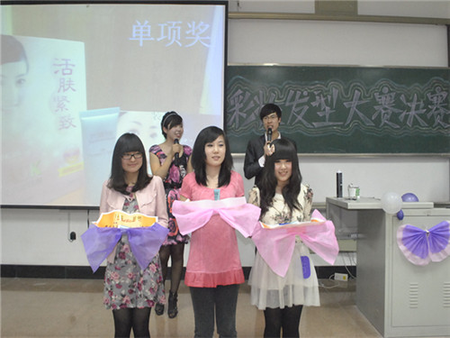 4月17日晚7点,由bat365官方官网女生部举办的第四届彩妆发型大赛在明水校区3217教室举行。为了更好的提供专业指导和体现学生本色,主办方特邀专业发型师和bat365官方官网学生代表担任本次比赛的评委。