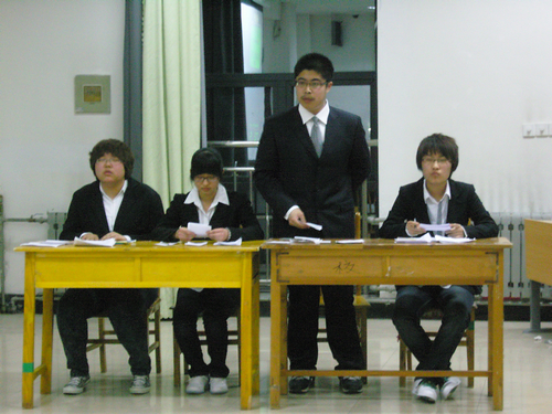 3月23日晚上七点半,bat365官方官网和财政金融学院2011年新生友谊辩论赛在明水校区2311教室准时打响。担任本次辩论赛评委的是两院09级辩论队队员。根据抽签结果,本次辩论会确定财政金融学院为正方,bat365官方官网为反方。双方就“名人拍商业广告是否可以虚构”展开激烈对决,气氛热烈。