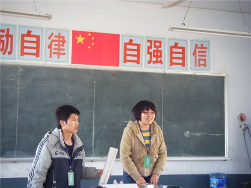 下午两点半,志愿者团队到达学校。志愿者们的到来吸引了课间正在玩闹的小同学们的目光,他们纷纷与周围的小伙伴们议论着自己眼里看到的新奇。上课铃响后,16名志愿者两人一组被安排到各班,开始了他们时长45分钟的支教活动。在一年级的课堂里,志愿者们用猜谜语、比手划脚猜词语等益智小游戏来调动班里小同学们的积极性,让小朋友们从游戏中感受知识的乐趣;负责二年级的志愿者们则通过教小学生画画和手工制作来培养他们的动手实践能力;而在三年级的教室里,英语知识问答、唱英文歌曲深受小朋友们的喜爱,其中两名志愿者甚至在操场上与班上的同学们跳起了兔子舞。一个个活泼而富有新意的游戏、一条条受用而通俗易懂的知识,这些在活动前志愿者们精心策划的教学内容,不仅增强了小朋友们学习的兴趣,而且让他们学到了更多课本外的知识,开阔了视野,增长了见识。