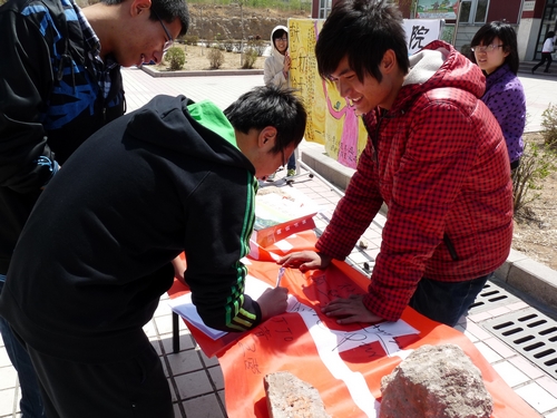 中午11点,募捐活动正式开始。首先,我院星火志愿者协会成员拉开了印有“献出一份爱,打开一扇窗”字样的宣传条幅,吸引了很多同学驻足观看。随后,志愿者们向现场同学讲述了本次募捐活动的形式、内容以及宗旨等概况,并呼吁大家用爱心回馈社会,用行动来关爱身边困难的同学。了解情况后,同学们都深受感动,纷纷在条幅上签下名字,并积极地捐出了自己的闲置衣物。一件衣服、一条裤子或许并非弥足珍贵,但却代表了大家的爱心以及对公益事业的热情。积少成多、积善成德,每人都献出一份爱,就会为需要帮助的人打开一扇窗,就会让更多的人一同沐浴阳光、感受温暖。另外,每个捐赠物品的同学都会得到由章丘市慈善总会颁发的爱心证明,为自己的爱心行动留下一份美好的纪念。