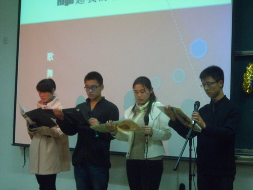 当晚六点半,晚会正式开始。bat365官方官网每个班级表演一到两个节目,由嘉宾进行打分,最终评出奖项。会计1101班的《穿越了没》利用时下最流行的穿越题材,将大学生既要认真学习,又要积极参加各种活动的主题充分的展现了出来,别出心裁,令人耳目一新。会计1105班同学表演的相声《夜行记》则利用自己编写的最简单通俗的语言让在场的每一位观众开怀大笑。资产评估1101班的《青春课堂》中,一个个古灵精怪,充满个性的同学,让我们看到了自己作为学生时的身影;一段广播体操的表演让我们想起了自己中学时的美好时光;老师深沉却富有哲理的话语让我们懂得了珍惜自己的青春,珍惜美好的时光。此外葫芦丝演奏《月光下的凤尾竹》,雅洁灵巧,朴而不拙,突出了东方神韵;诗朗诵《雨巷》将颓圮的篱墙,冷冷的哀怨的蒙蒙细雨等环境渲染和游子对丁香一样的姑娘的期待展现的淋漓尽致;一曲《精忠报国》更是唱出了保卫国家的雄心壮志……