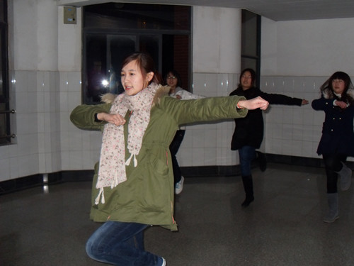 晚上七点,预选正式开始。本次预选共分为现场教授舞蹈内容和统一考核两个环节。首先,由参加过去年啦啦操及民族舞比赛的我院2010级演员们向现场同学们教授啦啦操及民族舞的部分内容。在学习中,参赛的同学们充满热情,严肃认真地模仿着演员们教授的基本的手位、步伐等动作,并在之后自己辅以练习,希望能够做到熟练流畅。虽然参加比赛的同学们之前没有经过共同的指导和训练,但仍凭着对啦啦操及民族舞的喜好,使初学成果良好,受到了在场的指导演员们的一致好评。在接下来的统一考核环节中,所有参选成员都积极地表现出自己最好的一面,不论是动作还是神情,都力求达到比赛要求的标准。