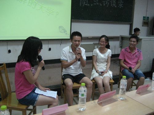 此次活动借助访谈的形式在四个环节中,让即将离开明水搬至本部的大二学子从学习生活、学生工作、质点通讯社工作、社团活动四个角度同大家分享了两年来的点滴经历和心灵感悟。首先,2010级学业上的佼佼者孙润楠、崔立泱、吕国成就大一学生所关注的专业学习、英语四六级考试、辅修二专业、自考各类证书等问题作出了简单介绍和经验的分享。“考证一方面给就业增添筹码,但如果忽视了本专业的学习则会得不偿失。”在问到当下大学生“考证热”现象时,孙润楠如是说。之后,bat365官方官网学习部、宣传部、基本功部及生活部的负责人作为学生工作者的代表向现场观众介绍了自己的工作经验和心得体会。而后,身为主办方的质点通讯社,在第三环节中由记者团、网信部、编辑部负责人为观众简介了三个部门的工作内容,讲述了通讯社中“像一家人一样”工作和友情的双重收获。由通讯社成员们演绎原创社歌《心手相牵》则讲当晚访谈推向了高潮。在社团活动环节中,bat365官方官网辩论队、承然环保协会、及星火志愿者协会的负责人则分别讲述了辩论队赛场下不为人知的辛苦和绽放大学之美的社团活动,真情展现了大学生活中平凡但又精彩的体验。最终,在财务管理1101班的大合唱——《明天会更好》的旋律中,访谈圆满结束。