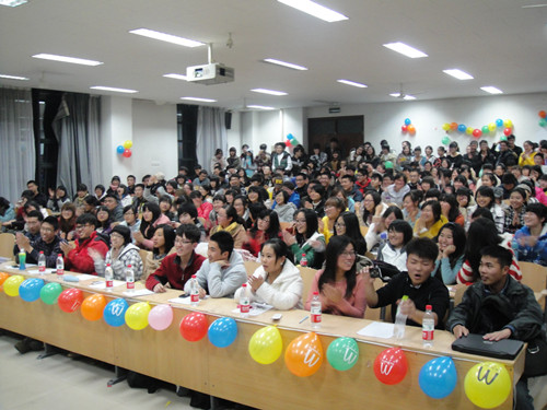 晚上七时,伴着时下最火的《江南style》舞蹈,晚会正式开始。一曲由飞天艺术团带来的歌曲《单身情歌》唱出了无数单身同学的心声,赢得在场观众一片掌声。随后,校话剧社凭借诙谐幽默的对白和逼真的话剧表演为我们上演了一场关于事业与灵魂的较量。在接下来的表演中,魔术揭秘环节揭开了魔术中一个又一个的秘密,而心翔语艺社所带来的诗朗诵《等你》则勾勒出了另一种温馨的画面。此外,穿插在晚会中进行的“谁是卧底”、“苹果蹲”、“非你莫属”等游戏,使得主办方与观众积极互动,现场高潮迭起,不时爆发出阵阵掌声和欢呼声。