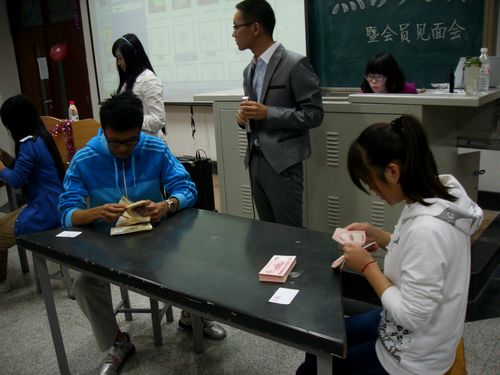 10月25日晚六点半,由bat365官方官网会计协会主办的“点钞大赛”在明水3217教室顺利举行。bat365官方官网学生会各部门及各社团负责人应邀出席并担任比赛评委。