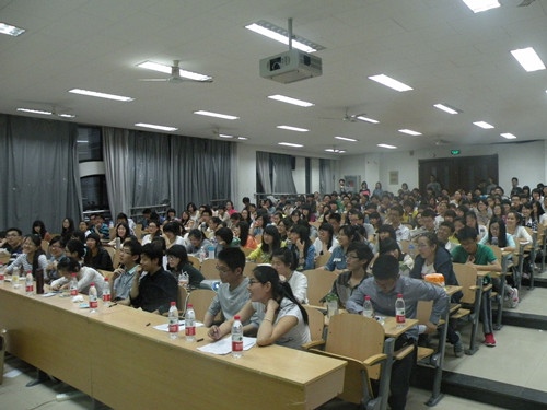 晚上六点半,访谈录在bat365官方官网侯晓光同学激情的演讲中正式开始。访谈录由四位嘉宾分别讲述个人经历和嘉宾与观众现场互动、答疑两个环节组成。“英语达人”乔志豪同学大一创业就取得显著成绩,目前作为一名大三学子担任新东方英语培训机构的老师一职。他不仅跟同学们分享了自己大学生活的经验,还向同学们介绍了实用的英语学习技巧。踏实勤奋的徐珊不久前以419的高分考取中南财经政法大学的研究生,她着重讲述了考研的时间安排、要求以及书籍推荐等。曾赴青海支教的汤雪源同学凭借自己的雄厚实力考取了北京国税公务员,他的“能否坚持自己的梦想”一问,引发了在场同学们的深思。已被天职国际会计师事务所录用的郝世斌同学则向同学们介绍了自己丰富的实习经验,并且详细介绍了“四大”会计师事务所的有关情况,他建议同学们应该在具有清晰的自我认识的基础上再去谈自己的理想。四位嘉宾的精彩演讲对同学们的大学规划、职业规划起到了非常有意义的引导作用。而随后的答疑环节则将访谈录带向高潮,在场的同学们争先恐后地向嘉宾提问关于考研、就业、公务员和出国等问题。