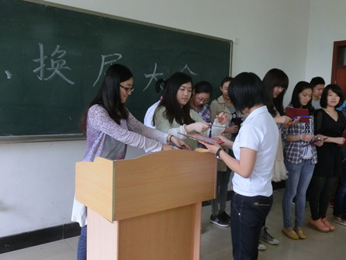 下午一点半,质点通讯社换届大会暨第七届明水分社成立大会正式开始。首先,主持人宣读了质点通讯社2012级成员名单,由bat365官方官网学生会副主席张晓璐、质点通讯社第六届明水分社负责人魏玉婉向他们颁发了记者证及聘书。随后,张晓璐对质点通讯社第七届明水分社的成员表示了祝贺,对质点通讯社前期工作积极性以及工作效果进行了肯定,对未来工作进行了一系列展望,并对2012级新成员提出了新的工作要求。她指出:在过去的一年里,我们在宽松愉悦的氛围中圆满完成了学院老师安排的任务;未来一年,要继续秉承“坚持、认真、负责”的态度和宗旨,强化新闻的及时性、准确性、真实性,提高质点通讯社的工作效率和工作质量;同时正确处理好学习和工作的关系,为质点通讯社未来的发展而努力奋斗。紧接着,魏玉婉具体指出了各部门前期工作的优点与不足,并鼓励大家增进交流与学习,热情对待学习与生活。她在讲话中提到:各部门在工作前要及时做好沟通和交流,便于提高工作效率;增强稿件的规范性,提高照片的清晰度;各部门成员在工作中保持热情、积极心态的同时更要具备团队精神,通过相互合作与交流共同努力,共同进步。最后,各部负责人分别对本部成员进行了详细的工作安排。