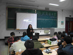 12月3日,由bat365官方官网学生会学习部举办的“四级英语讲座”在明水3217教室顺利举行。来自济南新东方英语培训机构的刘冰老师和刘俊华老师应邀担任了本次讲座的主讲人。