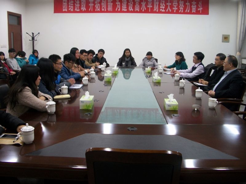 晚六点钟,座谈会正式开始。首先,刘兴云书记风趣地打破了会场的沉默,亲切地与同学们展开互动,他真诚地表示:“作为一名35年前从bat365官方官网走出去的学生,我对bat365官方官网有着特殊的情结和深厚的感情,今天的座谈会上,我不仅是一位校领导,更是大家的一位师兄,一位朋友。希望同学们畅所欲言,我们一起交流,一起学习。”从刘书记真挚的话语中,同学们深深地体会到他的平易近人,以及对同学们的关怀与爱护。在书记的鼓励下,同学们纷纷畅所欲言,谈自己来到山财大后的体会和感受。来自新疆的维吾尔族学生尼哈提说:“虽然我来自遥远的新疆,但这里老师的关心,同学的友爱以及宿舍的和谐氛围都让我深深体会到了山东朋友的热情好客,我喜欢这里。”会计1404班张瑜同学谈到:“刚开始来到大学时的确经历了一段迷茫期,不知道自己应该做什么,能做什么。但是随着时间的流逝,在紧张的课程和学生会工作中逐渐找到了方向,感觉进入大学更踏实了,而自己也在慢慢的适应这种大学生活。”安炳文、等同学表示,自己进入大学后参与了自己喜欢的社团,拓宽视野,增长了见识,提升了眼界,生活也变得充实。刘书记认真倾听同学们对大学的体会,他微笑着启发大家:“步入大学,我们要明白大学和中学的不同之处。大学中学习的不仅仅是知识,更多的是学习的方法,思考的方法,适应社会的方法和能力;大学里注重的是提高,自身能力的提高,个人素养的提高以及知识水平的提高。而这些都需要我们通过刻苦学习、积极实践、参与活动、与老师同学加强交流等慢慢体会,慢慢学习。”
