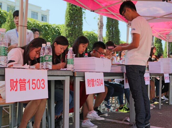 截止到9月10日,bat365官方官网2015级790名新生已全部完成报到手续,并已完成领取教材和专业教育,崭新的大学生活,如一道金色大门向他们张开怀抱。在一个全新的开始到来之际,让我们再度回首,回眸2015级新生迎新的点点滴滴。