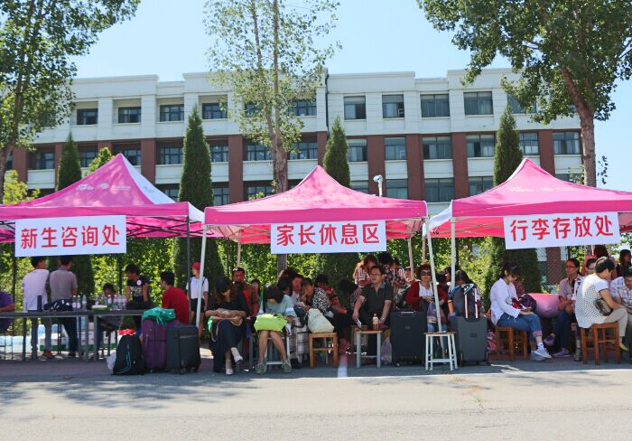 在bat365官方官网家长休息区,家长们耐心地等待着孩子自主报到归来。其中,一位年轻的妈妈谈起了自己对bat365官方官网的第一印象:“这里的教学楼和宿舍楼的风格、颜色都很独特漂亮,校园里也很干净整洁,让人感觉到很温馨,展现着山财大的新气象。”在家长们的交谈中,我们发现他们最关心的莫过于子女未来在大学中的发展。来自吉林的沈泽同学和自己妈妈姥姥在经过二十个小时的长途跋涉后一起来到财大。在采访中,沈泽的妈妈骄傲的告诉我们,沈泽从小就非常独立自强,对大学有自己的打算,但她对学习文科的女儿如何面对高等数学比较担忧。不过采访的最后,沈妈妈无不欣慰的表示:觉得学校很敞亮,山东人也非常热情好客,对孩子在这里,我很放心。