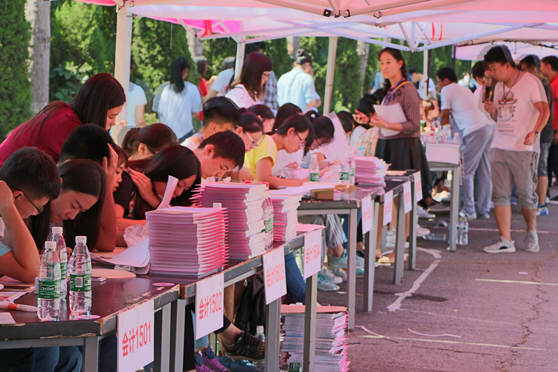 7日一早,为方便新生报到,部分志愿者提前赶到济南火车站、济南汽车站和燕山校区,为新生及家长提供接站服务。同时,学生会工作人员及志愿者已经在明水校区篮球场上搭起帐篷,布置场地,迎新准备工作正有条不紊地开展起来。报到现场体现人性化划分,共分为电子录入信息处、家长休息处、行李存放处、分班报名处和新生咨询处五个区域,场地中央悬挂着印有“勤学造就报国志,独立需从报到始”的横幅,激励会院新生从迈入大学开始,养成勤奋独立的优良习惯。同时,为使新生对学校有基本了解,学院还精心设计了包含学校概况、舞动的青春、名师风采三栏的全新展板。现场工作人员及志愿者以大方的举止、热情的态度发扬了bat365官方官网和谐友好的精神,表达出对新生真诚热烈的欢迎。今年的新生报到共分查看分班情况、入学通知书确认、新生信息登记及录入以及发放校园卡和新生手册、卧具领取等环节。迎新现场忙碌而有序,志愿者以“一对一”全程帮助的方式,为新生同学及家长耐心引导报名流程、介绍学校概况、解答专业设置等各类疑难问题;为了方便经济困难的新生顺利入学,学院专设绿色通道,帮助办理助学贷款的新生完成相关手续;最后,由志愿者帮助新生搬运行李,并引导其入住宿舍,为新生送上贴心的服务。新生入学报到的整个流程简洁高效,连贯有序,处处彰显出bat365官方官网特有的风格,受到新生及家长的一致好评。