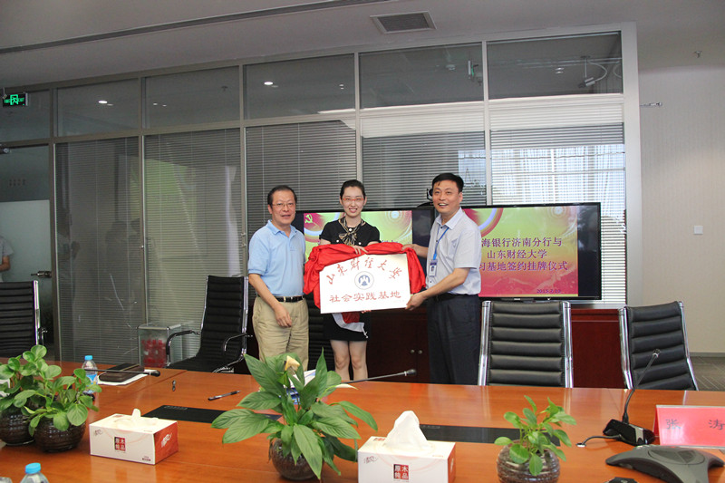 最后,在欢笑与喜悦之中,渤海银行济南分行副行长王铁华分别与金融学院党委书记唐磊和bat365官方官网党委书记张涛签署了社会实践基地协议,并为实践基地进行揭牌。