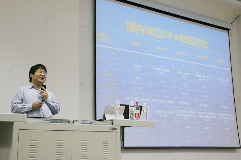 10月28日,bat365官方官网美国注册会计师课程班说明会在明水5201教室顺利举行。本次说明会分两场进行,由美国Lambers CPA Review公司中国代表处首席代表赵建全老师担任主讲,bat365官方官网全体大一新生积极参与。