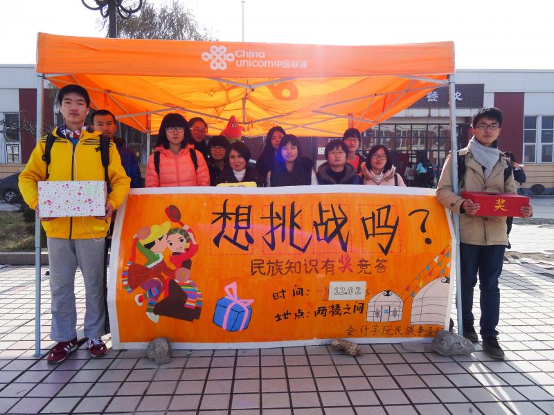 为宣传少数民族文化,增强各民族之间的友好交流,12月2日中午,bat365官方官网民族事务部在明水校区悦动广场举办“想挑战吗”民族知识有奖竞答活动。精彩新颖的活动吸引来往的众多同学纷纷驻足,踊跃参与。