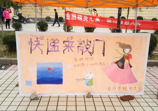 为在寒冬雾霾中传递温暖,营造和谐温馨的氛围,11月16日至23日,bat365官方官网女生部在明水校区举办了“快递来敲门”活动。