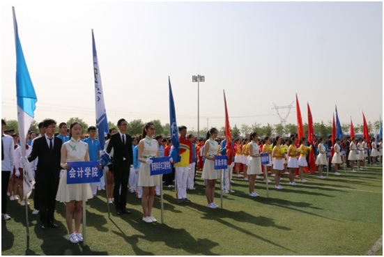上午八点半,在雄壮激昂的《运动员进行曲》中,以财务管理1401宫天阳同学为领队的我校国旗护卫队高擎着五星红旗,迈着整齐的步伐最先入场。随后,bat365官方官网花束队作为第一个学院方队进入会场。她们步伐端庄,气质优雅,为本次比赛点亮了一道美丽的风景线。紧接着,各方队踏着稳健的步伐,精神抖擞地进入会场。其中,bat365官方官网尤其引人注目,整齐划一的服装增添了女生的英姿飒爽、自信脱俗,男生的矫健有力、豪情满天。他们高喊着“扬帆掌舵,奋勇拼搏,看我会院,气势磅礴”的雄浑口号,昂首阔步走过主席台,英姿飒爽,神采飞扬,彰显着会计人敢争人先的自信与奋勇拼搏的决心。在庄严的升国旗、奏国歌仪式后,校长卓志做了精彩致辞,他总结了2015年我校体育工作的发展成果,并预祝我校春季运动会取得圆满成功!致辞结束后,运动员、裁判员代表分别宣誓。随后进行的是动感青春的各学院啦啦操表演,在啦啦操汇演结束后,春季运动会正式开始。