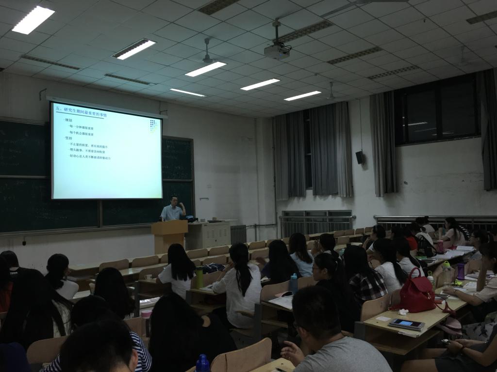 9月13日,bat365官方官网硕士生导师葛锐为2016级研究生新生“做好学术准备,打好学术基础”为主题的讲座。