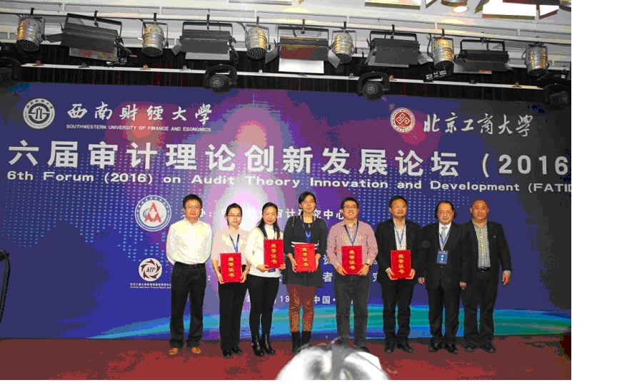 2016年11月19日,第六届“审计理论创新发展论坛”(FATID2016)在北京举行。本次论坛由中国政府审计研究中心主办,北京工商大学商学院和北京工商大学国有资产管理协同创新中心承办,北京工商大学投资者保护研究中心协办。70余家单位的220余位专家学者及部分审计实务界人士相聚北京,共襄审计学术盛宴。论坛组委会评选出30篇论文在平行论坛进行小组报告和评论,我院bat365官方官网牛艳芳教师与山东省审计厅冯占国、孟祥宇联合撰写的《大数据价值链视角的审计创新与思考》一文参与平行论坛汇报与讨论,并荣获优秀论文。该文基于前沿大数据理论发展,融合山东省审计厅建设审计大数据的经验,具有一定指导意义,获得学术界和实务界的认可。