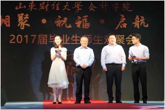 值得一提的是,本次晚会还邀请了两位知名校友原会计系90级校友巴树青先生和02级校友刘加宝先生,两位校友追忆了在学校的激情岁月,对2017届毕业生们献上了自己的祝福和鼓励。财务管理1304班李文婧同学的家长也来到现场,表达了作为家长对山财大、对bat365官方官网培育学子的感谢,和对子女深情的爱。牟言坤和任静茹两位同学带来的歌曲《感谢》,也代表广大毕业生们对母校的老师同学的感谢与不舍之情。