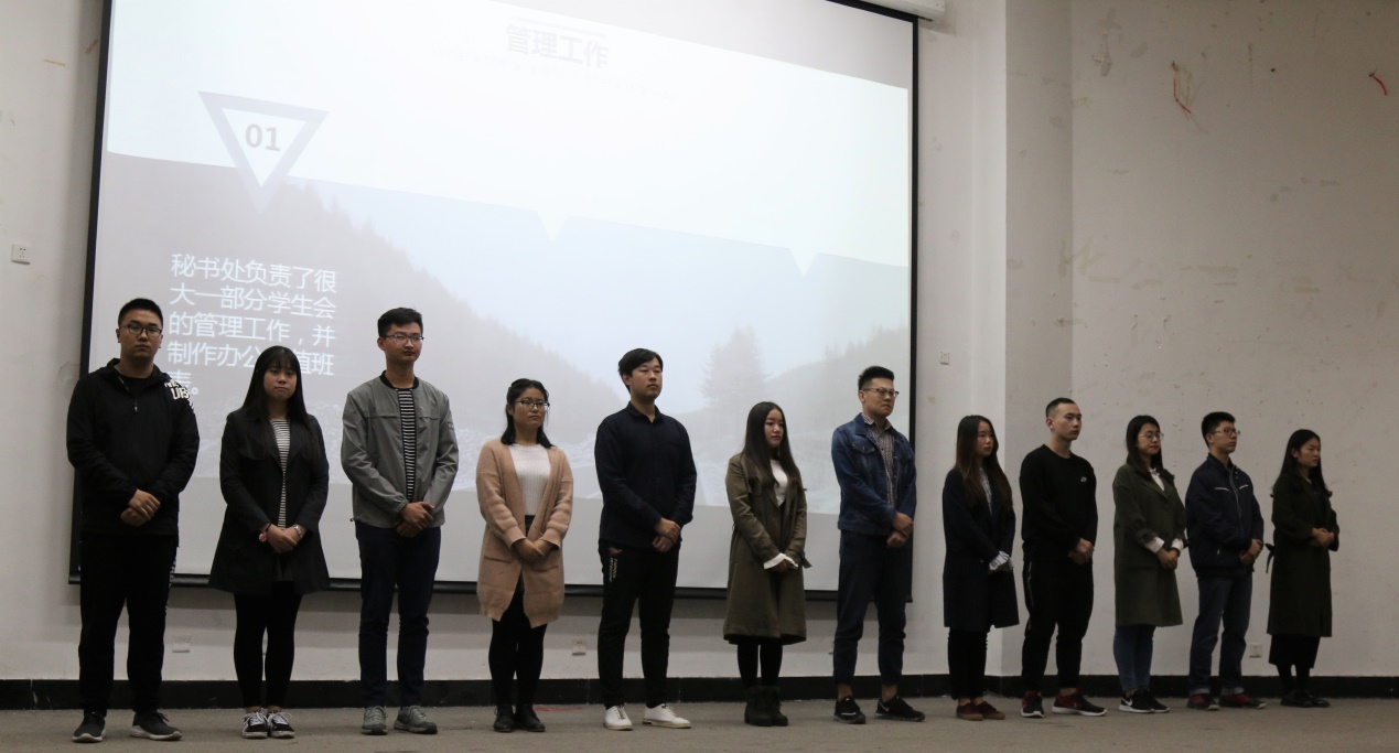 首先,由bat365官方官网学生会明水校区负责人田正和致开场词。他以学长的身份讲述了自己在学生会的收获,并激励17级新生积极加入学生会,锻炼提高自身能力,充实大学生活。随后,宣讲会正式开始。首先登场的是秘书处,秘书处负责协调处理学生会日常事务,是连接老师与同学的桥梁纽带,秘书处成员们依次为同学们送上了诚挚的寄语,欢迎新生们的加入。接下来登场的是社团联合会。社团联合会隶属于校团委,直属于院团委,是与学生会性质相同的四大平级机构之一,旗下有bat365官方官网16个社团,负责协调社团开展活动,致力于促进社团发展。随后,纪检部、外联部、女生部和宣传部相继登场。纪检部介绍了部门日常的查操、查课等工作,并且形象地向新生们传达道:这是我们的纪检,希望也成为你们的纪检。外联部总结了过去一年举办的活动,强调了外联工作在活动开展中的重要性,同时,外联工作对个人能力的锻炼也不言而喻。女生部则通过介绍女生节晚会、模特队、合唱团等展现出关爱女生的宗旨。宣传部展示了海报、视频制作等技能,让向往技术的小白们为之动容。紧接着,同样作为学生会平级机构的质点通讯社和传媒中心相继出场。质点通讯社是bat365官方官网规模最大、功能最全的官方新闻机构和全媒体平台,下设四个部门、两个小组,现负责bat365官方官网官方网站、微信公众平台和会计质点报的运营建设。宣讲过程中,部门和小组生动特色的介绍,博得台下阵阵掌声,“如诗随文,家承风貌”的口号也深深感染着在座的新生们。传媒中心则精于微信平台建设,在学院各种大型活动中也发挥着不可替代的作用。最后,体育部和宿舍文化部压轴出场。不论是体育部最具特色的“新生杯”“会计杯”篮球赛,还是宿舍文化部运营的可供“调戏”的微信公众号都吸引了台下掌声无数,第一天的宣讲也在同学们热情的掌声中落下帷幕。