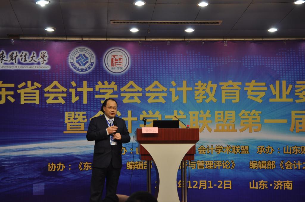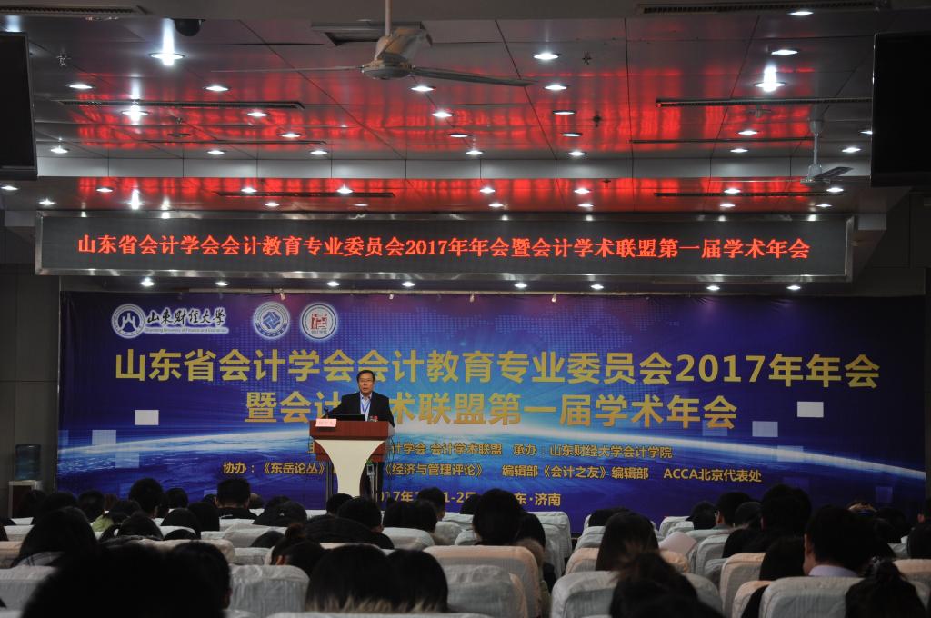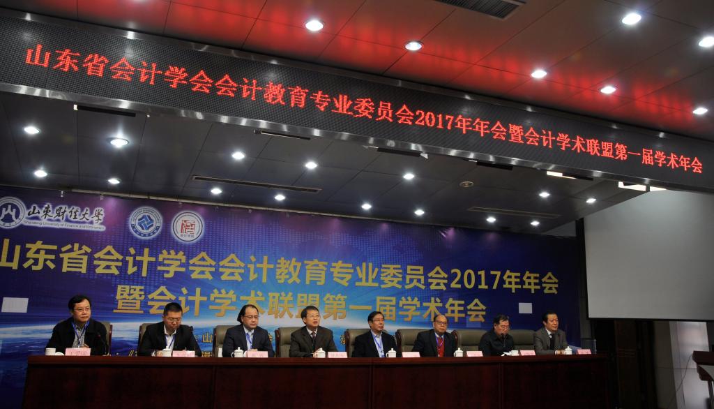 12月2日,由山东省会计学会、会计学术联盟联合主办,bat365官方官网承办,《东岳论丛》编辑部、《经济与管理评论》编辑部、《会计之友》编辑部、ACCA北京代表处协办的山东省会计学会会计教育专业委员会2017年年会暨会计学术联盟第一届学术年会在山东天舜大厦成功举办。山东省财政厅会计处处长刘焕平、对外经济贸易大学副校长张新民、南京财经大学副校长王开田、西南财经大学教授蔡春、会计学术联盟发起人李高波、bat365官方官网副校长韩作生、bat365官方官网院长王爱国、党委书记张涛出席大会开幕式。来自中央财经大学、中国人民大学、南开大学、山东大学、兰州大学、北京交通大学、西南财经大学、东北财经大学、中南财经政法大学、南京财经大学、东南大学、河海大学、中国海洋大学、首都经济贸易大学、澳大利亚伍伦贡大学 、ACCA中国区等40余家单位的近200位学者、专家、博士、硕士研究生应邀参加了此次年会。