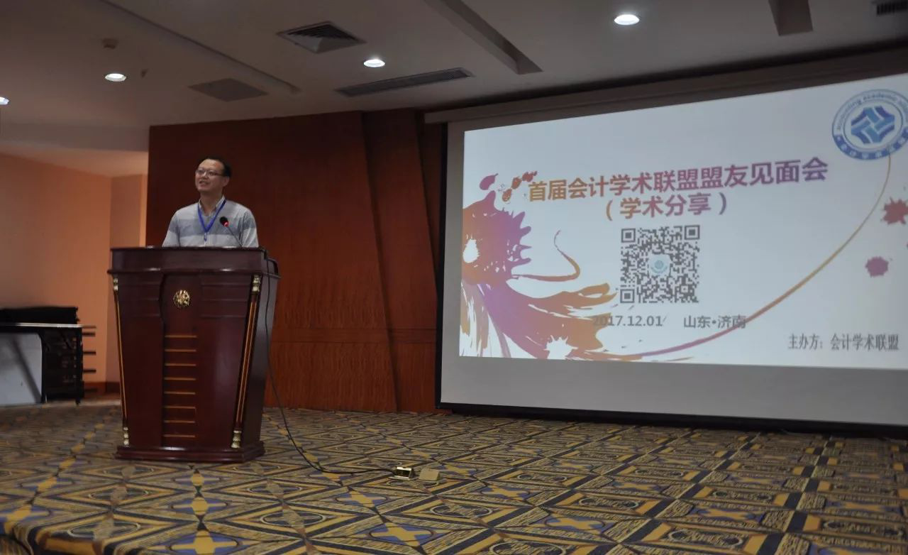 12月1日下午14:00,首届会计学术联盟盟友见面会在bat365官方官网舜耕校区石岛山庄德智楼成功举办。会计学术联盟发起人李高波、河海大学新夫教授、华南师大徐思博士、中国人民大学钟凯博士、中央财经大学李哲博士、bat365官方官网副院长王守海、财务会计系主任韩跃以及来自16个省市、40余所院校的盟友们出席了本次见面会。bat365官方官网2017级学术研究生有幸参加了此次盟友见面会,共同享受了一场精彩的学术分享盛宴。bat365官方官网副院长王守海主持了本次见面会。