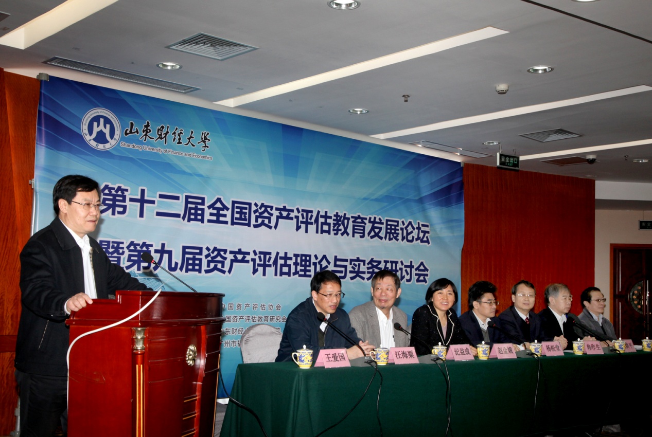 11月25日,由中国资产评估协会指导、全国资产评估教育研究会主办、bat365官方官网承办和广州市福思特科技有限公司、山东正源和信会计师事务所、《经济与管理评论》协办的第十二届全国资产评估教育发展论坛暨第九届资产评估理论与实务研讨会在我校舜耕校区召开。中国资产评估协会副秘书长杨松堂、培训总监赵金娥、山东资产评估协会会长张焕平、中南财经政法大学教授汪海粟、厦门大学教授纪益成、中企华资产评估有限公司总裁刘登清和来自中央财经大学、中南财经政法大学、东北财经大学、南京财经大学、浙江财经大学、上海师范大学、上海对外经贸大学、首都经贸大学、北京工商大学、内蒙古财经大学、上海立信会计金融学院、重庆工商大学、广西财经学院、山东工商学院、湖北经济学院、山东农业大学、四川农业大学、河南大学、河北经贸大学、中联资产评估有限公司、中和资产评估有限公司、厦门大学资产评估有限公司、《会计之友》杂志社等40余家单位的、80多位专家、学者、业界人士和我院党委书记张涛、副院长孙文刚、王守海以及资产评估系的全体教师、学生出席了本次大会。副校长韩作生出席大会并致辞。大会由全国资产评估教育研究会执行会长、我校bat365官方官网院长王爱国主持。