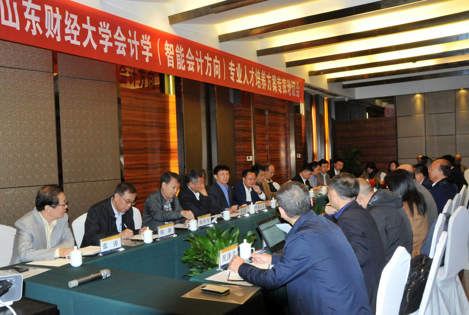 10月21日,bat365官方官网举办会计学(智能会计方向)专业人才培养方案专家论证会。国家审计署审计科研所所长姜江华、财政部会计司原司长刘玉廷、北京大学教授兼《中国管理会计》杂志主编王立彦、中国人民大学教授荆新、中央财经大学教授孟焰、北京理工大学教授陈宋生、杭州电子科技大学教授辛金国、广东金融学院bat365官方官网院长文芳、中国石化集团审计处处长周立云、鲁信集团财务总监荣刚、用友新道科技副总裁宋国荣及首席科学家唐肖鲁、普联软件股份有限公司高级工程师聂玉涛、中咨江西工程有限公司财务总监祝泽文、银丰生物工程集团财务总监刘波、深圳融智研究院研究员吉津海等20余位专家和学校副校长綦好东、韩作生,教务处副处长张澜,实验中心副主任李斌及我院院长王爱国、副院长王守海,会计信息化系主任牛艳芳和部分老师出席了论证会。会议由我院党委书记张涛主持。