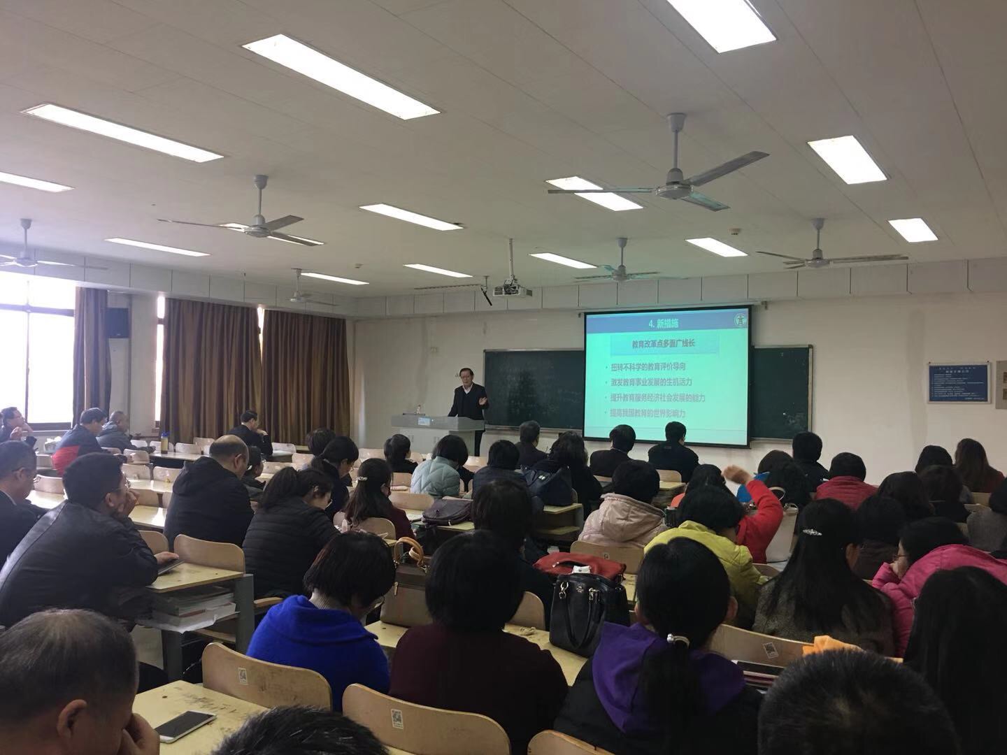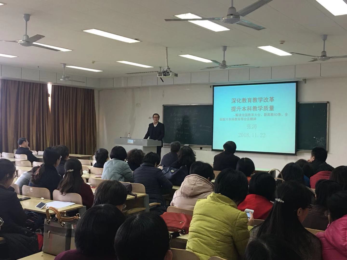 11月22日下午,bat365官方官网召开全体教职工大会,bat365官方官网党委书记张涛做了题为“深化教育教学改革、提升本科教学质量”的报告,解读全国教育大会精神、学习教育部全国高等学校本科教育工作会议以及新高教40条,分析当前本科教育形势、畅谈高等教育“创新”理念。