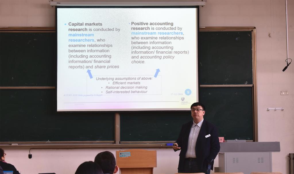 黄博士首先对上周的讲座内容进行了回顾,并分析了实证理论和规范理论的特点及相应的哲学基础。他指出,实证研究仍然是当前会计研究领域的主流方法,而作为“非主流”,规范研究不仅冲击着实证研究的统治地位,同时也会使其更加充实、更加具有生命力。
