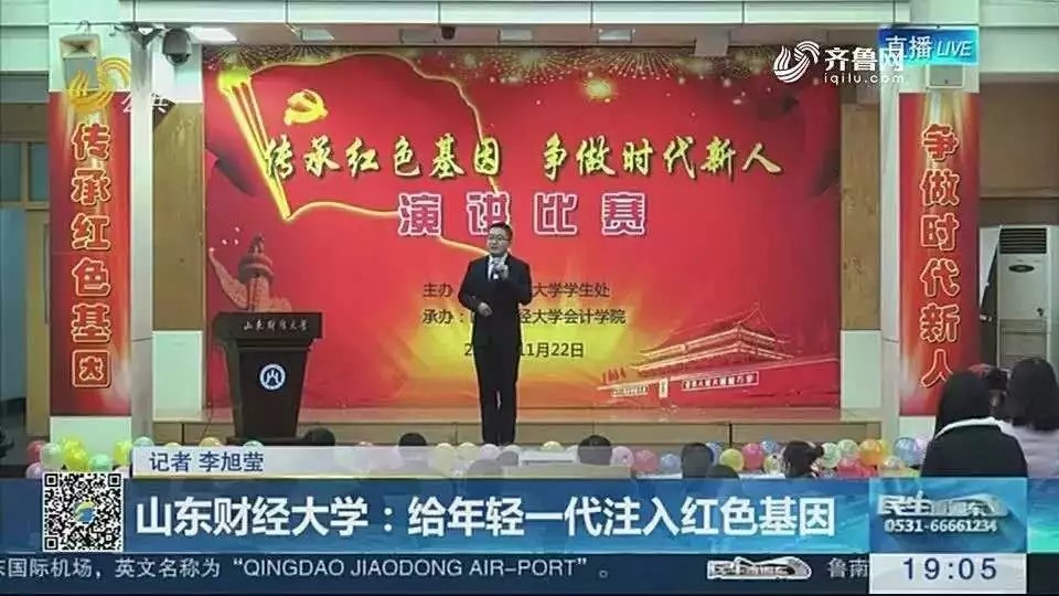 (山东卫视对“传承红色经典 争做时代新人”演讲比赛进行实时报道)