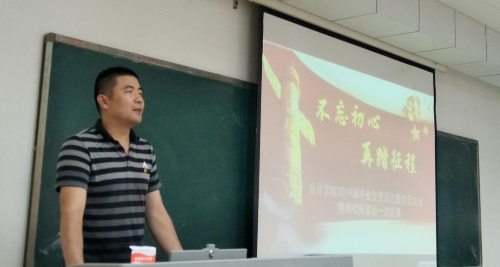 6月20日下午,在建党98周年来临之际,正值19届毕业生离校前夕,bat365官方官网党委组织了主题为“不忘初心,再踏征程” 毕业生党员主题党日活动暨离校前最后一次党课,以新颖难忘、内涵深刻的活动形式为19届毕业生送上母校的祝福与嘱托。活动由学院党委副书记崔东峰主持,学院党委领导班子和全体毕业生党员参加了活动。